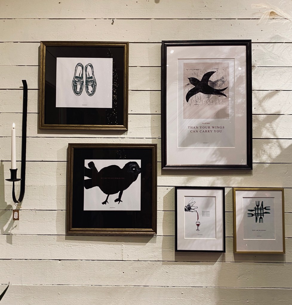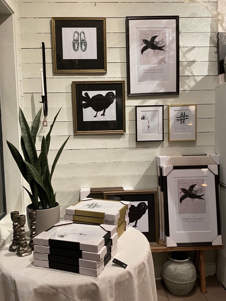 Jag och Inger gjorde om hörnet i vårt första rum i butiken och satte upp en fräsch tavelvägg.