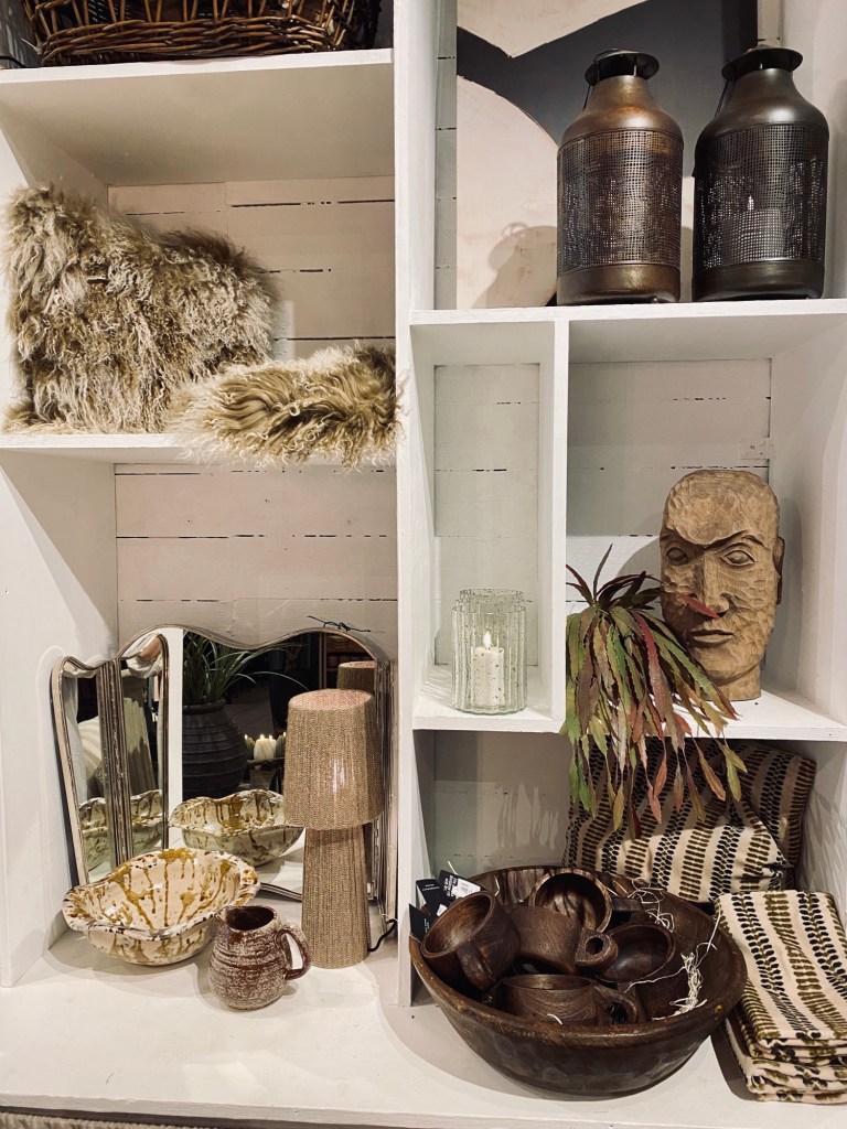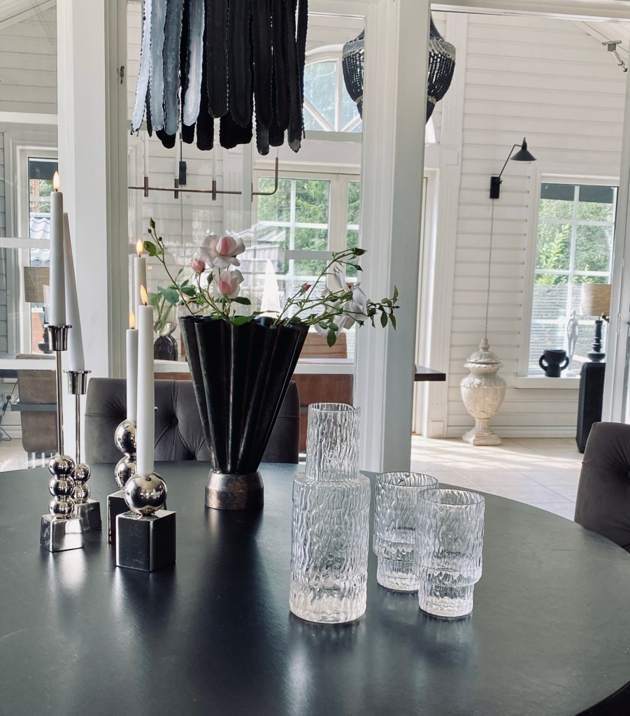 Den bruna höga ljuslyktan (som också är en vas)är också något utöver det vanliga.