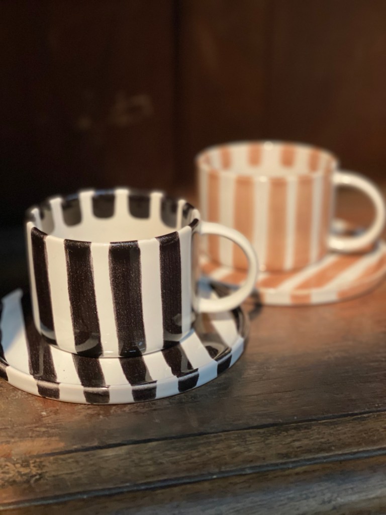 Ränderna är kvar även rosetter och volangerna hittar vi precis överallt. Vi gillar mörka möbler som gärna får vara bruna.