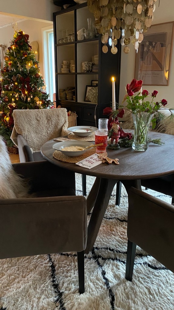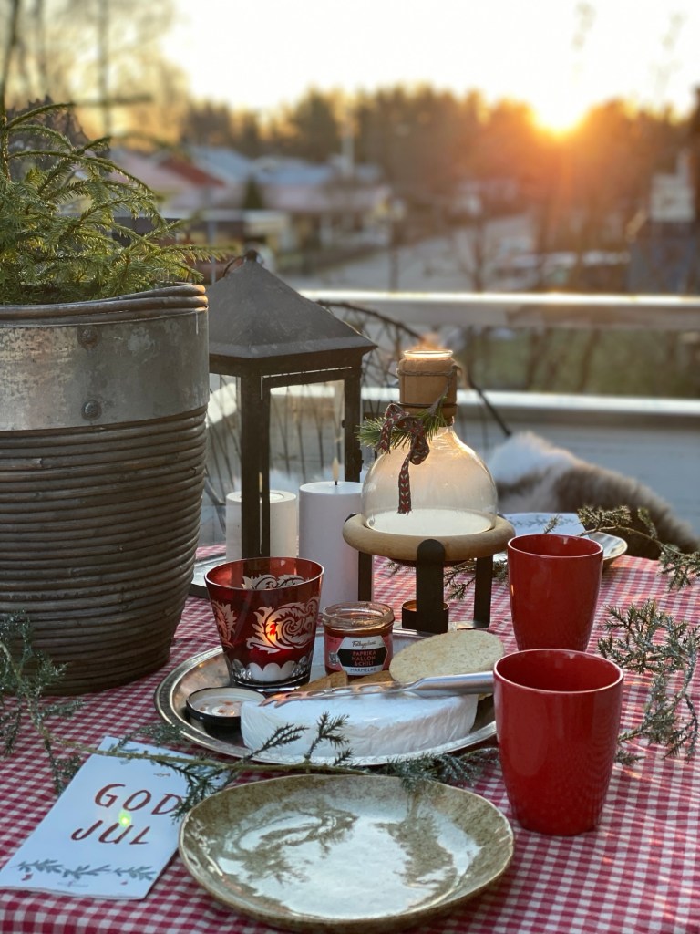 Mot förmiddagen åkte jag (enligt tradition)till mamma för glöggmys på hennes balkong . Julmusik från högtalaren, varm glögg och pepparkakor med ost och marmelad. Solen sken och vi fick en riktigt julig stund tillsammans.