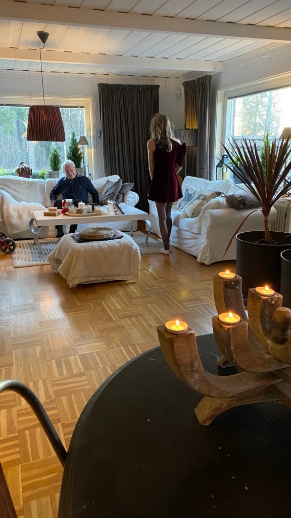 Sedan var det dags för jullunch hos Vilmas pappa. Mattes pappa Stig var med .
