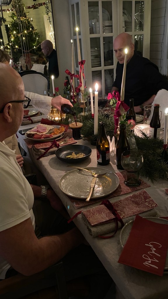 Vi avslutade med glögg och vaniljfyllda saffransbullar . En julafton med nära och kära . God mat och minnesvärda stunder.