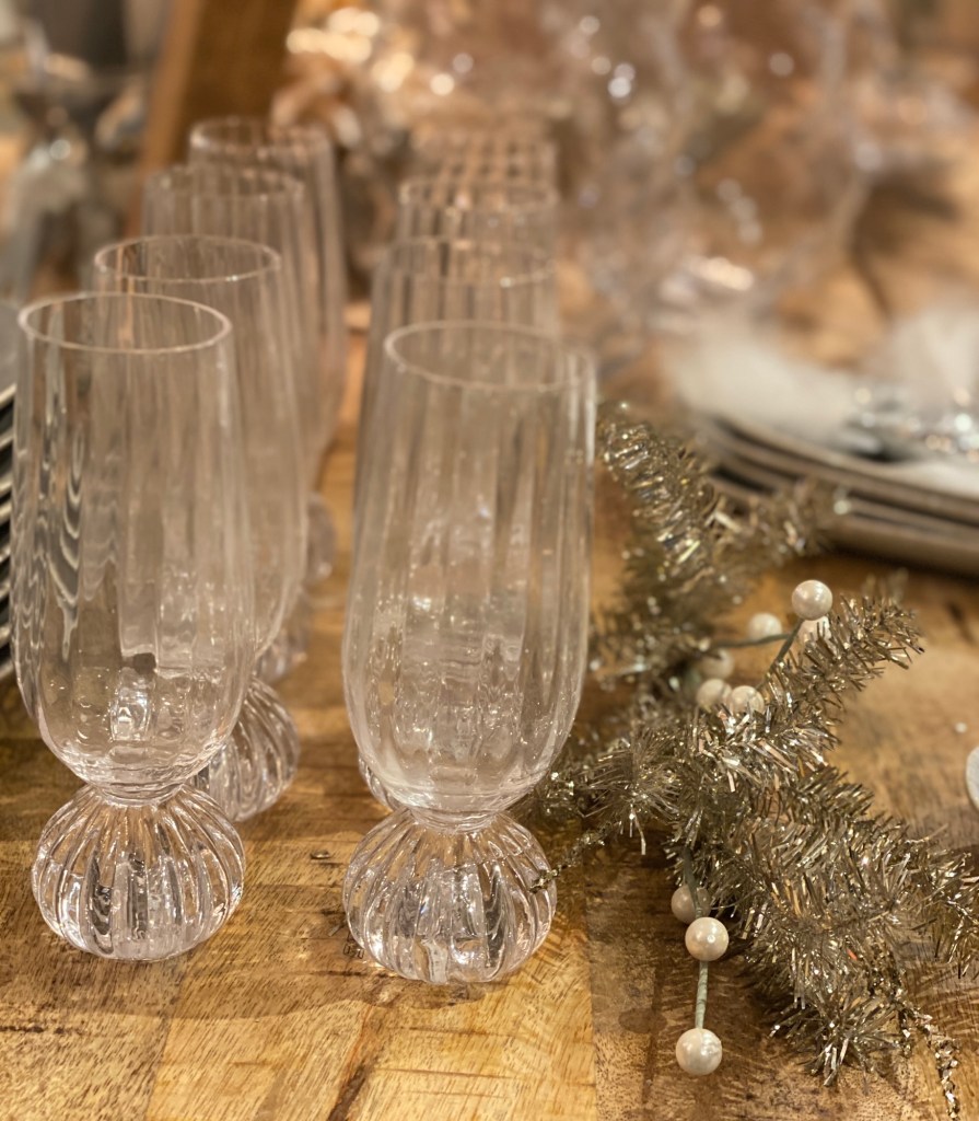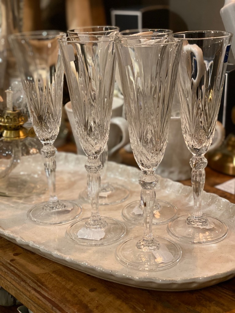 Ytterligare en fin modell på champagneglas är den här med solid fot och vågiga mönster.