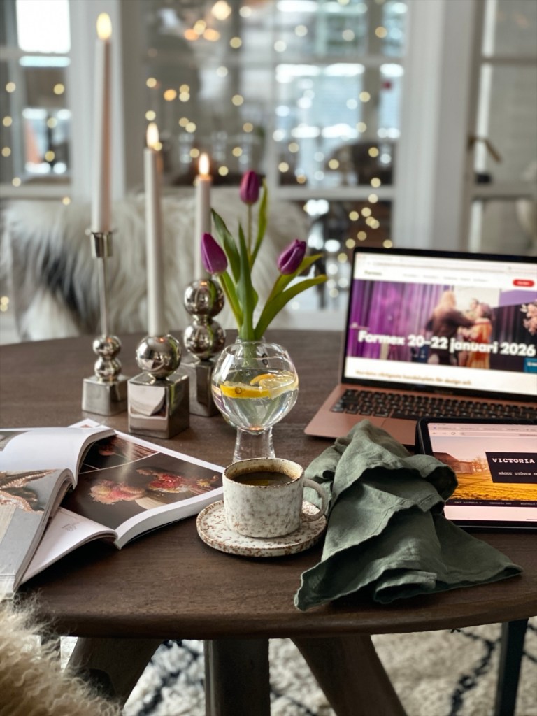 Jobbade i butiken och cafeet i går. Här är det nytt!Älskar känslan på det stora bordet.