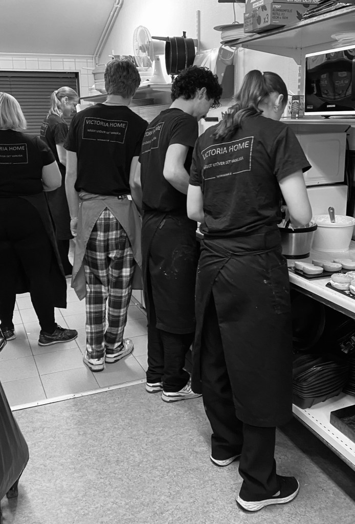 I cafeet bakas det, tillverkas mackor och förbereds för luncher hela morgonen.