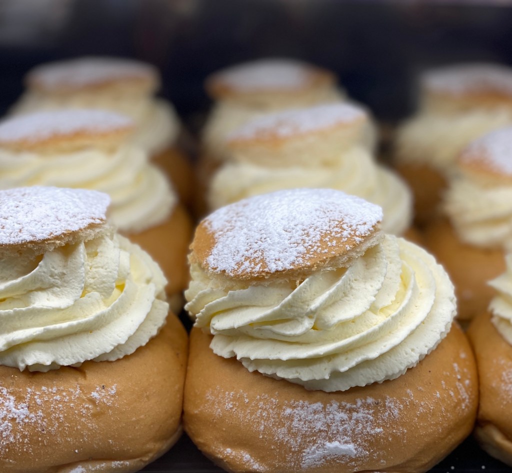 Vi har bullat upp med fluffiga semlor och en massa andra goda nybakade bakverk. Vi förbereder för goda måltider och rejäla mackor också.