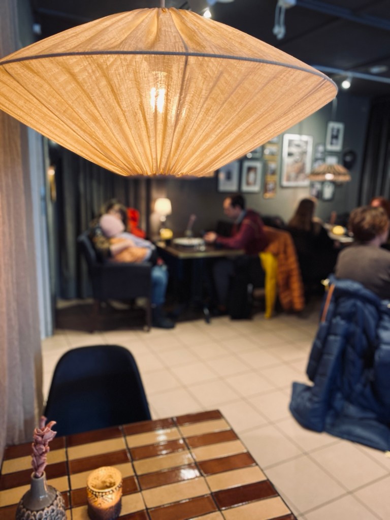 Luncher serveras i en strid ström och hyllorna fylls på med bakverk eftersom de sinar. Mjuka toner av musik från den nya spellistan fyller våra tre rum. Varende en av våra 94 sittplaytser är upptagen. Efter några minuter ser jag att längst bort i cafeet kliver en barnfamilj upp från stolarna. Ett nytt hungrigt sällskap med fyra äldre herrar tar över deras platser.Samtidigt som alla våra tre rum fylls av ett mysigt sorl.