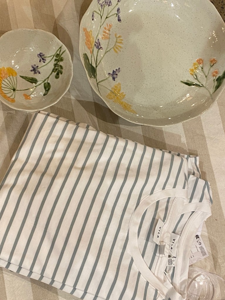 Vid vårt kök i butiken har vi fått in så många mysigheter. De randiga kopparna med fat .
