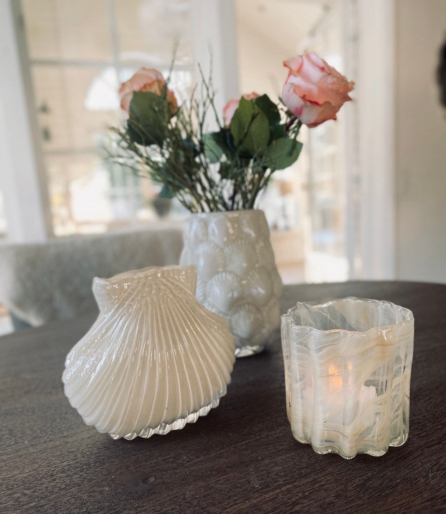 Dessertskålarna på fot och den här vasen med en lätt skev framtoning och ojämn yta i glaset är en favoriter.