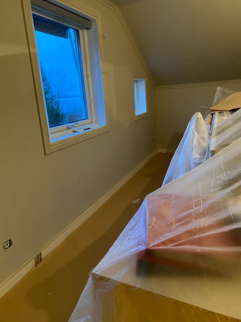 Sedan tog vi tag i kvällens projekt . Målning i gästrum.