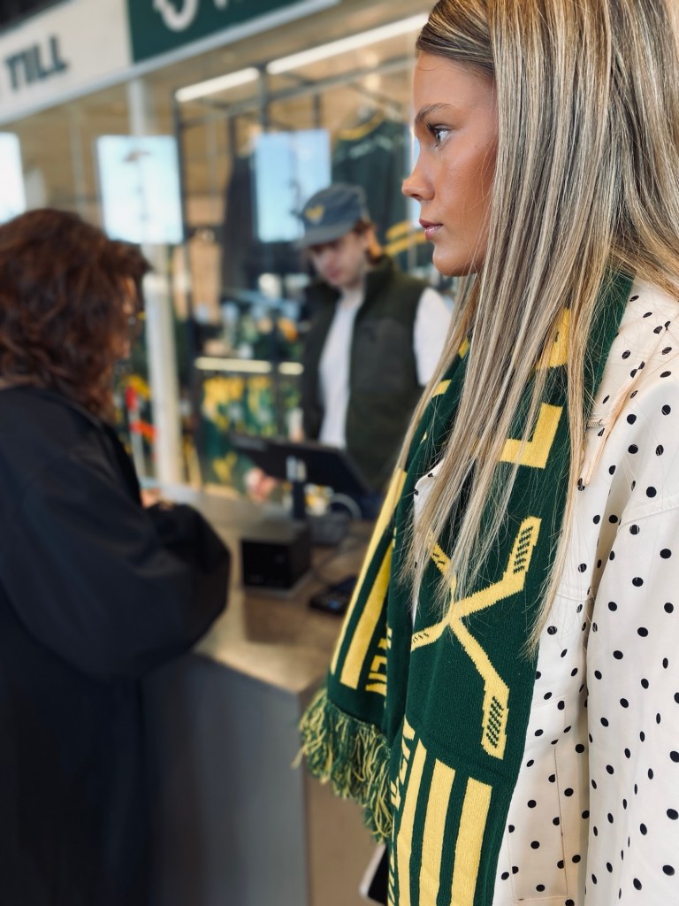 Jag, Vilma,Daniel och mamma var pÄ lövenmatch i torsdags . Mamma hittade inte sin lövenhalsduk och köpte sej en ny.