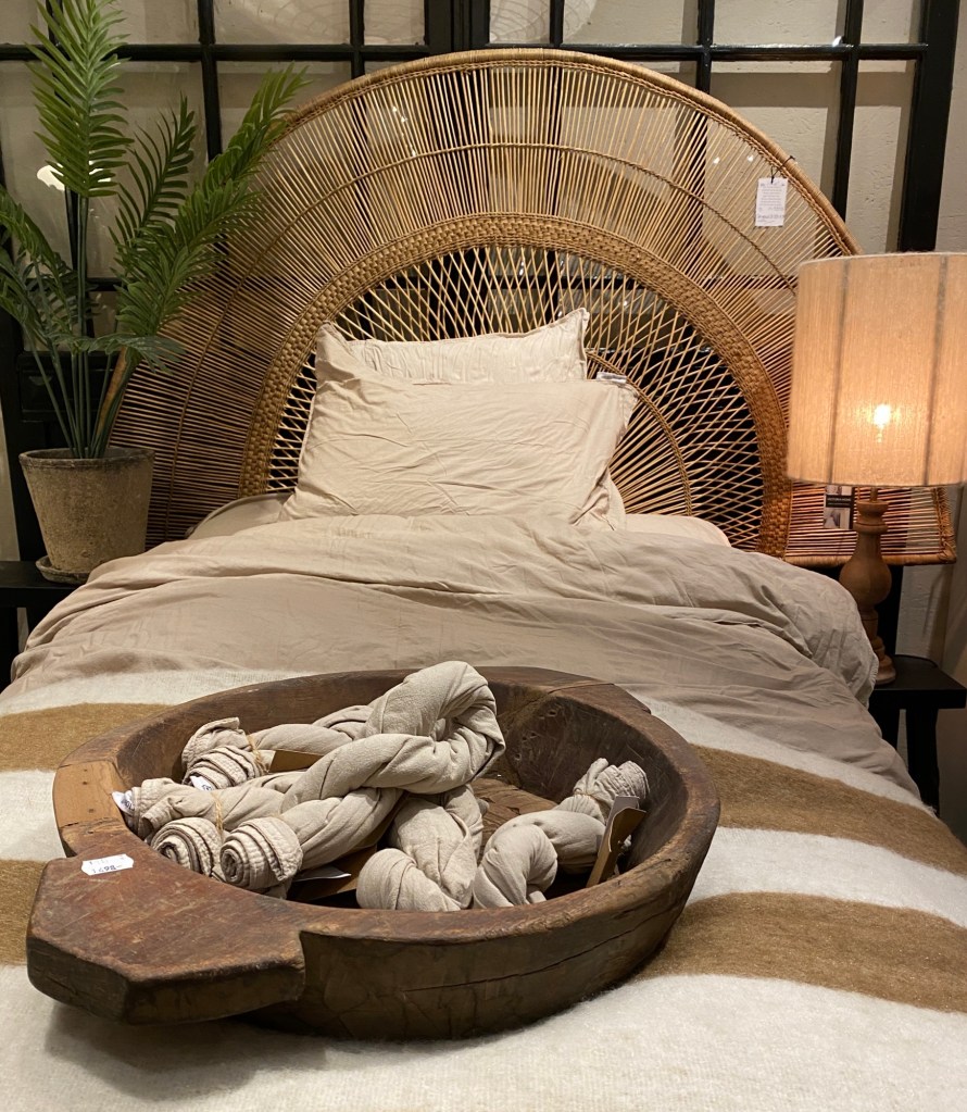 Vilken dag det blev i butiken och cafeet i går. Jag började med en spaning runt i butiken. Det blev så mysigt här i sovrummet i Victoria home. Vi har bytt färg på sängkläderna och inrett för en härlig vår. Älskar den här nyansen på sängkläderna.De är gjorda av bomull och känns så där fräscht prassliga men är ändå mjuka. Det unika gamla träfatet är fyllt med örngott i samma fina nyans.