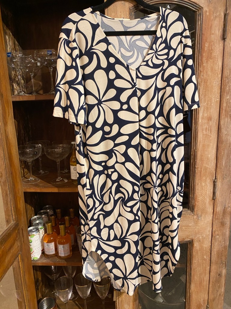 Vi väljer noga ut vårt mode.Det har landat så himla snygga klänningar också. Som den här med en liten slits i sidan och med mjuk rundning nedtill. Massor med stretch i ett fallande tyg.