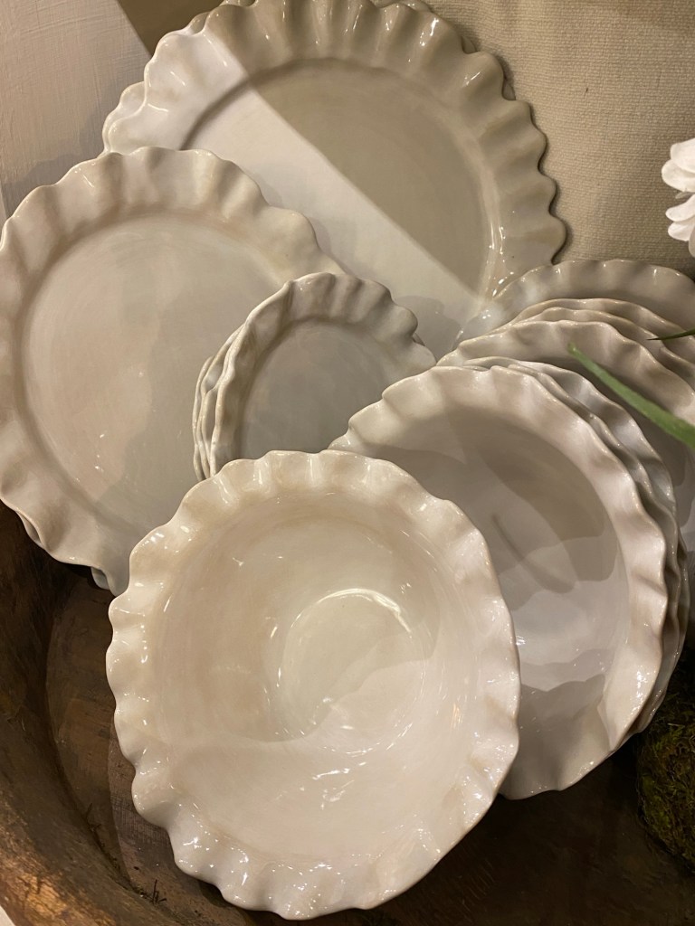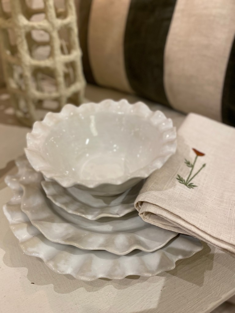 Kolla in den här serien av tåligt stengods. En fantastisk modell på den djupa skålen, assietten och tallriken med den mjuka vågiga kanten.