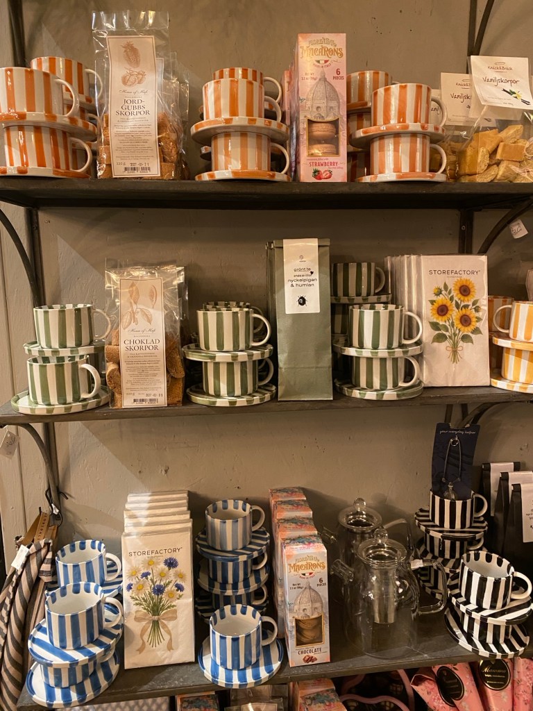 I vårt skafferi har vi laddat med ett randiga handmålade koppar, skorpor, teer, mysiga servetter och urfina kökshanddukar.