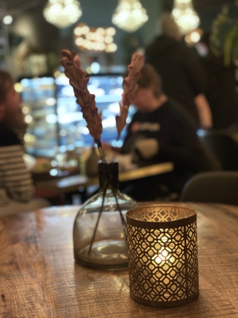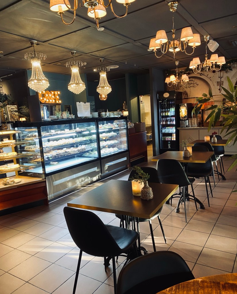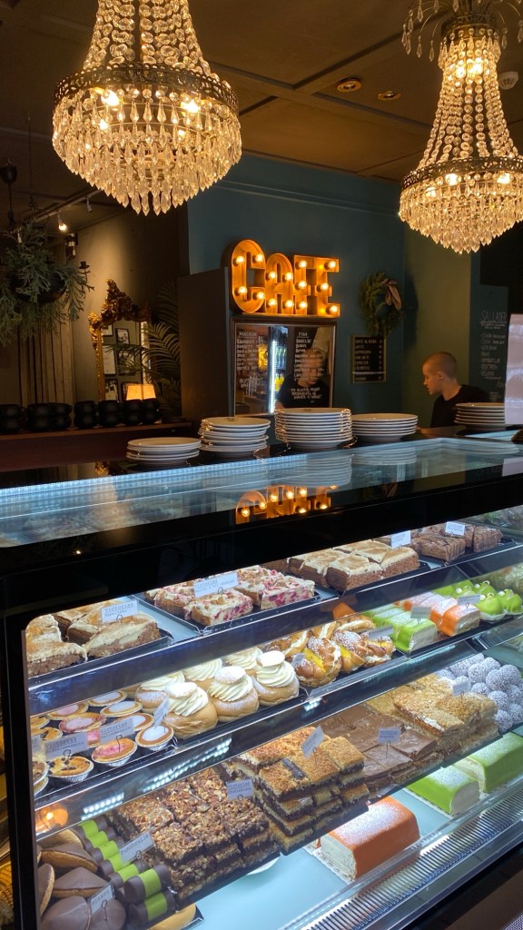 Luncher serveras i en strid ström och hyllorna fylls på med bakverk eftersom de sinar. Mjuka toner av musik från den nya spellistan fyller våra tre rum. Varende en av våra 94 sittplaytser är upptagen. Efter några minuter ser jag att längst bort i cafeet kliver en barnfamilj upp från stolarna. Ett nytt hungrigt sällskap med fyra äldre herrar tar över deras platser.Samtidigt som alla våra tre rum fylls av ett mysigt sorl.