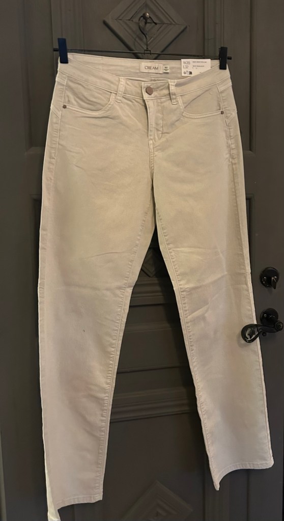 Vit jeansjacka, ljusa brallor , randig tröja och en superfin blus. Kolla in jeanskjolen och väskan också.