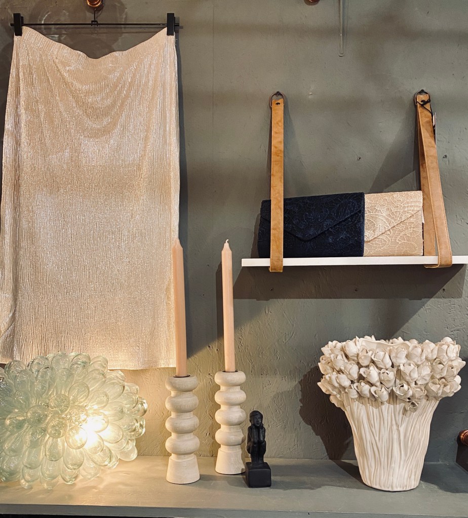Vi inreder med dofter också. Förutom vår egen fina serie av doftpinnar och doftljus så bara måste jag välja ut en av dessa otroliga franska rumsdofter . Ljusstakar av keramik , en unik skål och vaser .