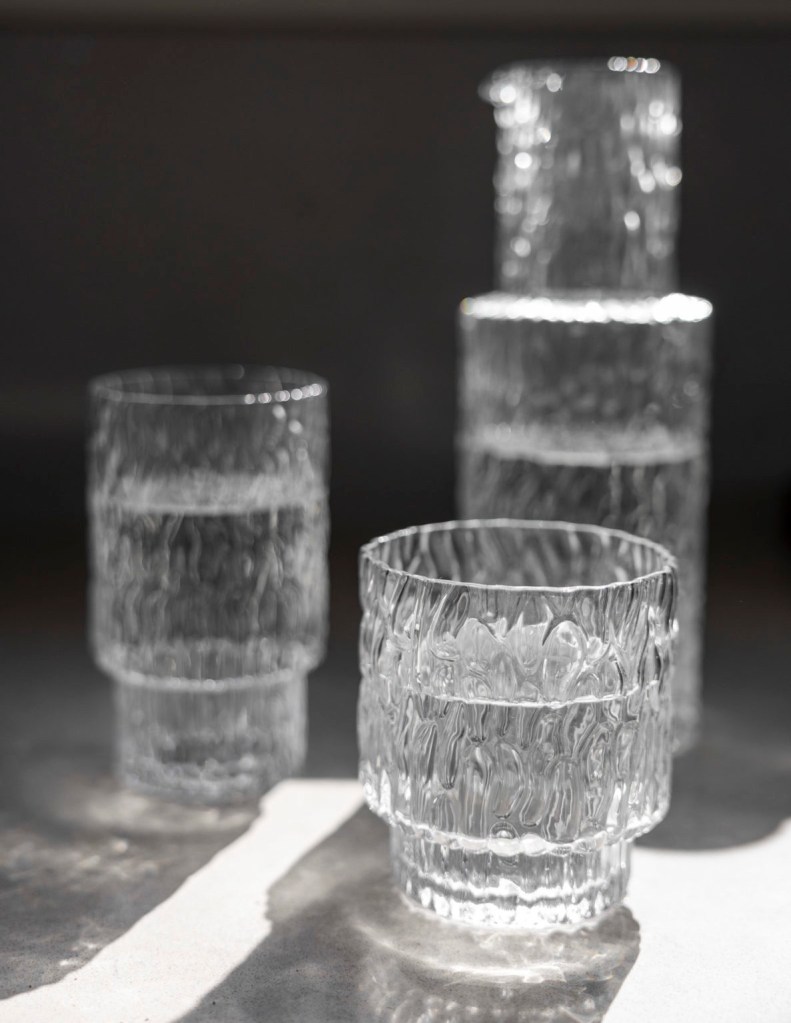 Även de populära glasen har äntligen kommit in igen. I två bra storlekar, en karaff och skålen på fot som är årets nyhet i den serien.